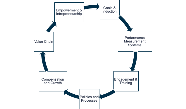 Empowerment and Intreprenership is the final pillar which leads to employees becoming internal entrepreneurs and navigating the organisation into the organisation off the future enabling the Management / promoters team to look for new pastures and avenues of growth and promise